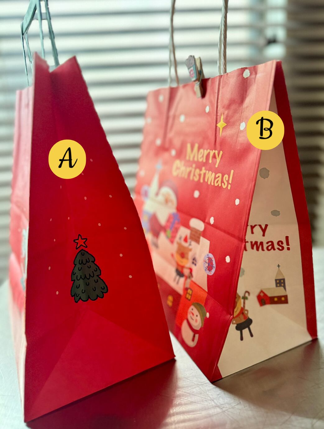 手提げ紙袋とオーナメントはオプションとなります。ご入用の方は紙袋AまたはBを選択してください。(紙袋の口を止めているクリップは付きません。)
