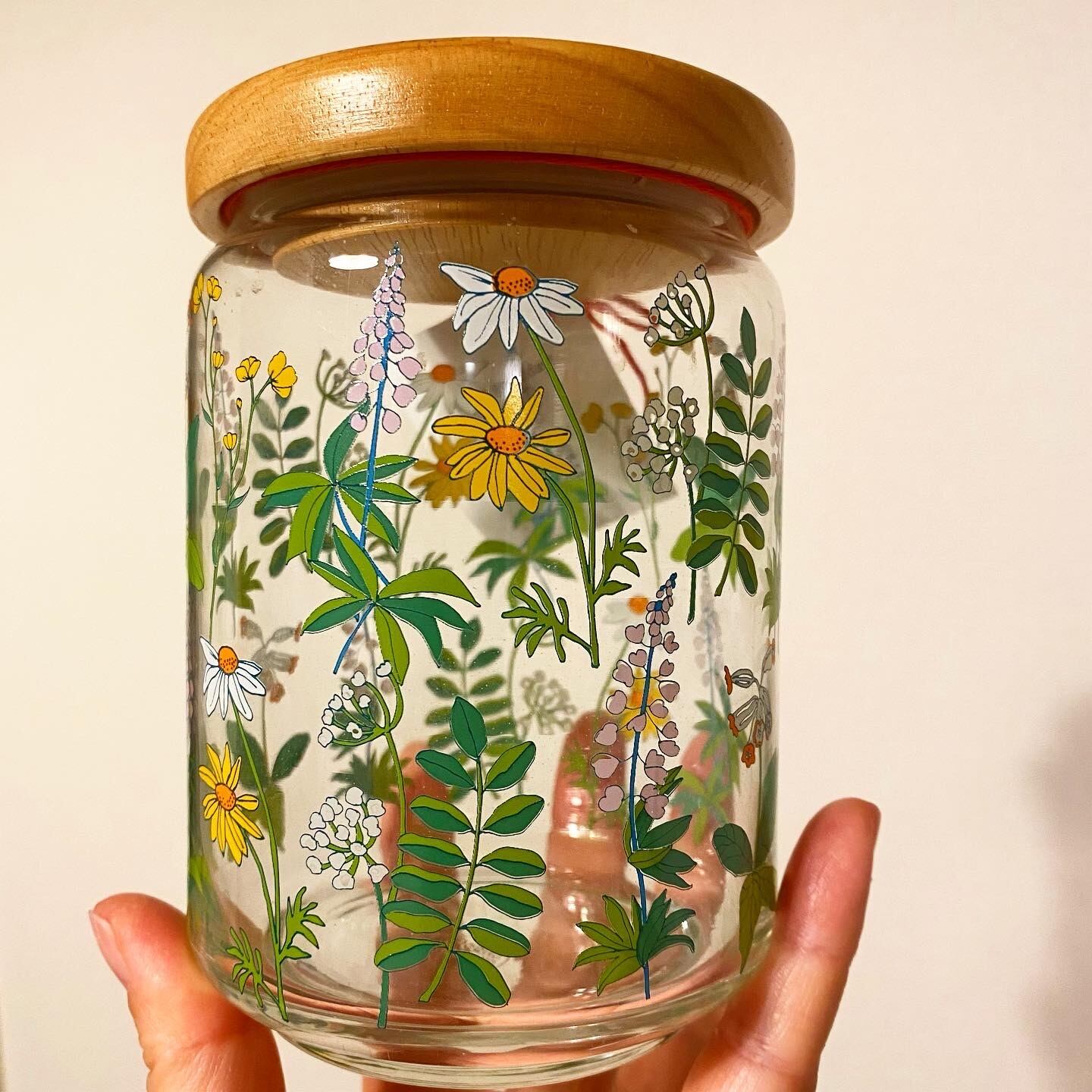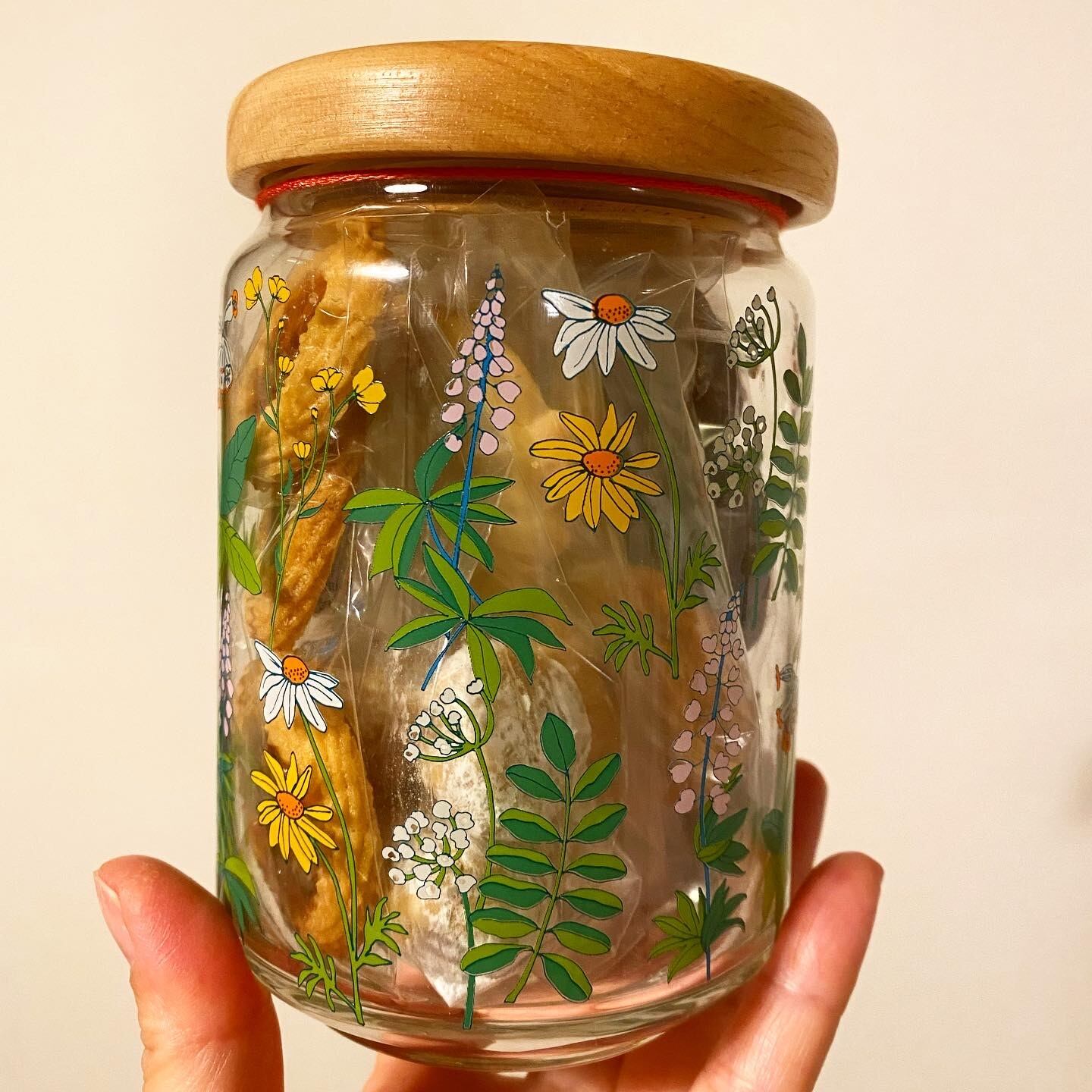 かわいいお花のキャニスターに小さめお菓子を詰め込みました。