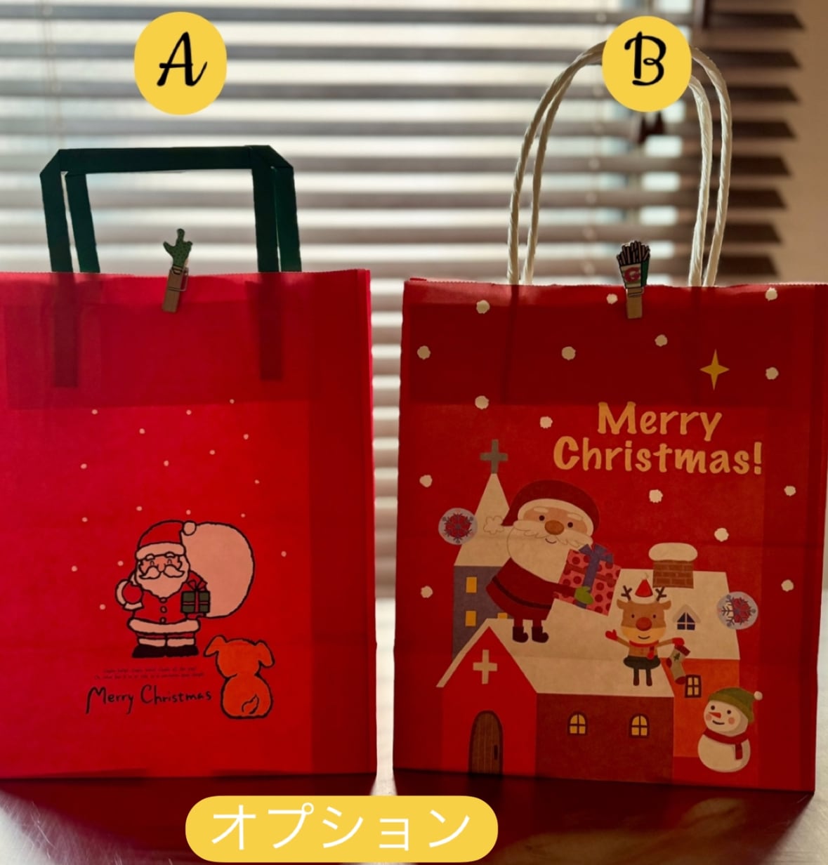 手提げ紙袋とオーナメントはオプションとなります。ご入用の方は紙袋AまたはBを選択してください。(紙袋の口を止めているクリップは付きません。)